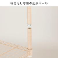 ■お使いのラックに継ぎ足しできる延長専用ポール。延長した部分にも棚板やパーツを取り付けることができます。連結部分はまったく目立たず、2.5cmおきの溝にも影響がありません。