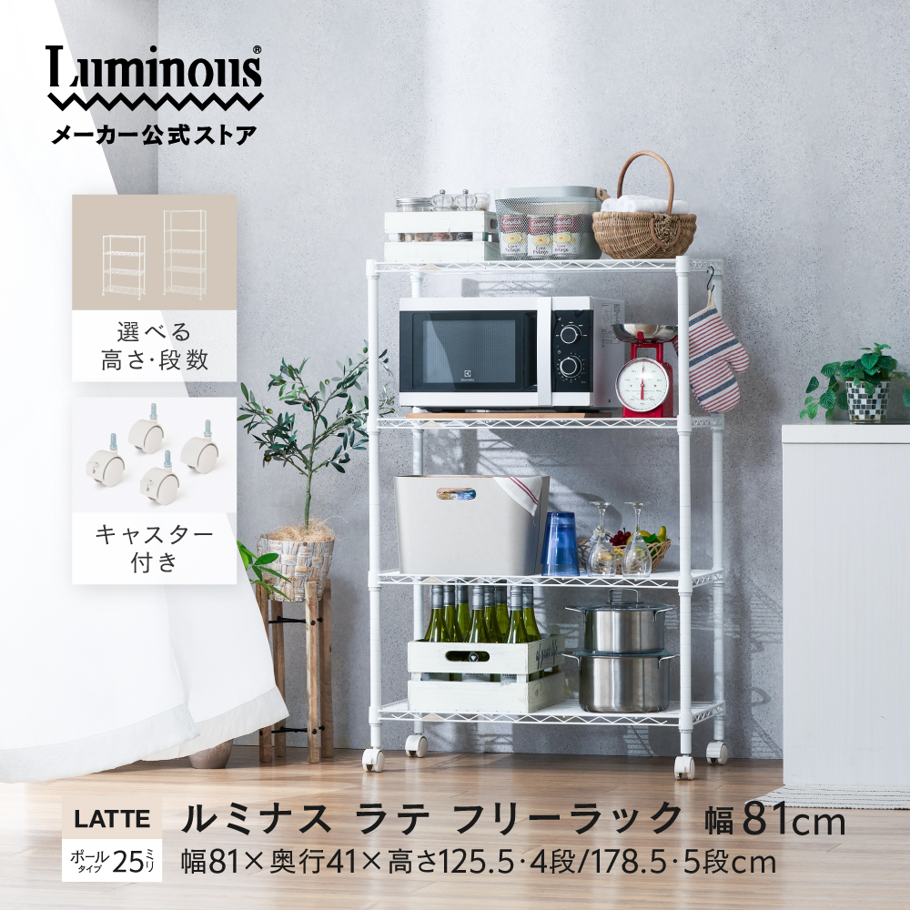 スチールラック 幅80cm 4段 ルミナスラテ ホワイト 白 おしゃれ スチールシェルフ キッチン 収納棚 納戸 大容量 業務用 幅81×奥行41×高121cm EHE80124