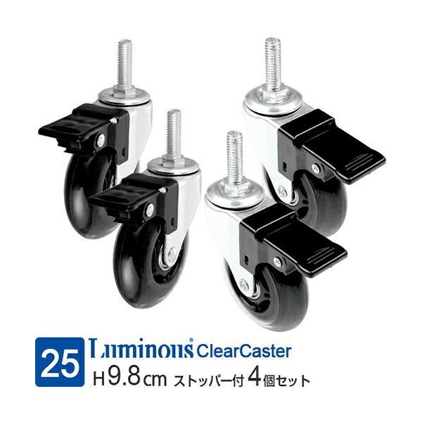 ルミナス ラック パーツ キャスター 4個セット 25mmポール 車輪 ストッパー付 クリア 静音 静か 足回り スチールラック メタル 部品 高さ9.8cm IHL-B2P75S