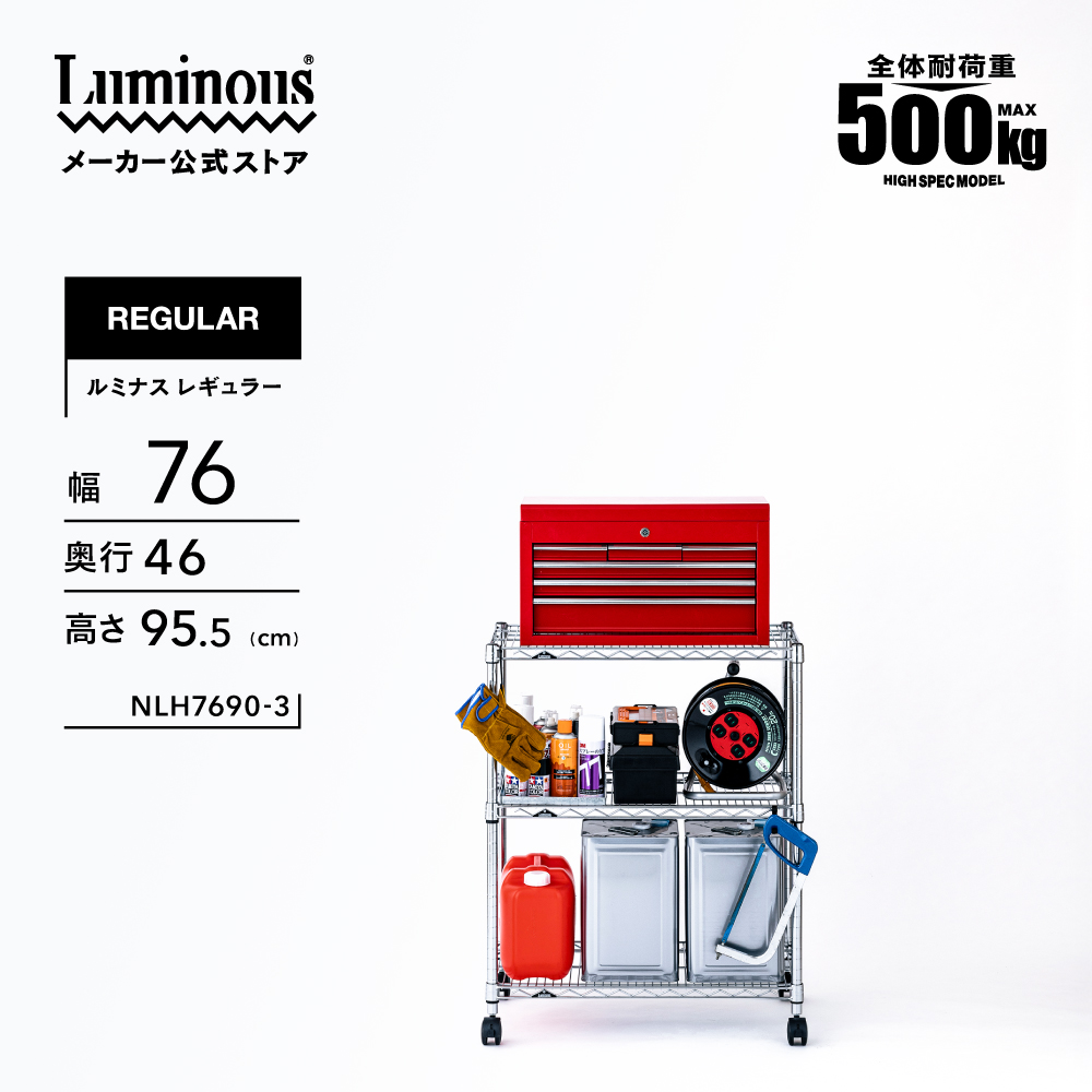 棚板×3、ポール×4、標準アジャスター×4、ナイロンキャスター×4(ロック付×2、ロックなし×2)、スリーブ(取付部品)13組、スパナ×1