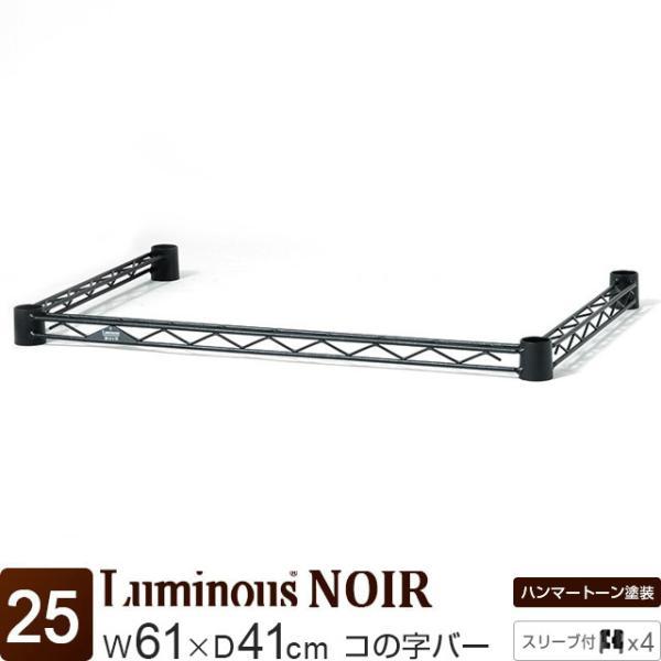 コの字バー 幅61×奥行41cm ルミナスノワール ブラック 黒 おしゃれ スチールラック パーツ ポール径25mm用 補強パーツ 幅60cm NOKWB-6040