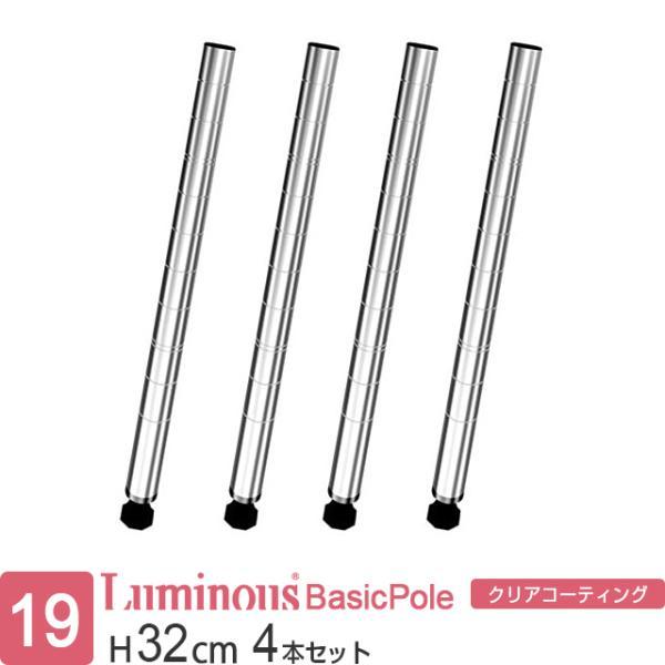 ルミナス 公式 ライト パーツ 基本ポール 4本セット スチールラック ラック 19mmポール 対応パーツ 収納 棚 柱 業務用 標準アジャスタ付 高さ32cm PHT-0030SL