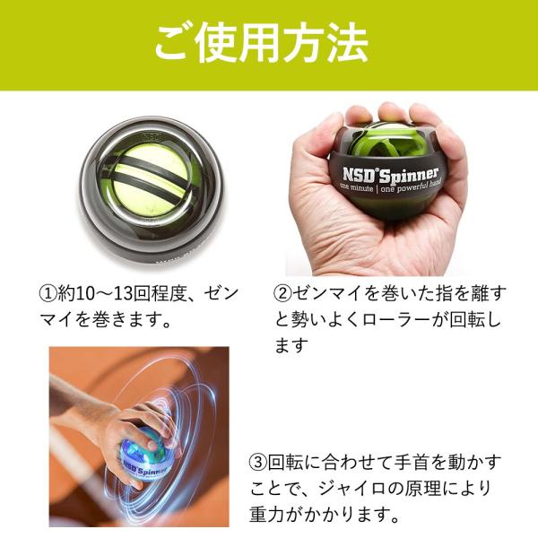 ジャイロの原理を応用したNSD Spinnerは加える力を変えることで簡単に腕にかかる負担を調節することが出来るので、ご自身に合う負荷でトレーニングが行えます。