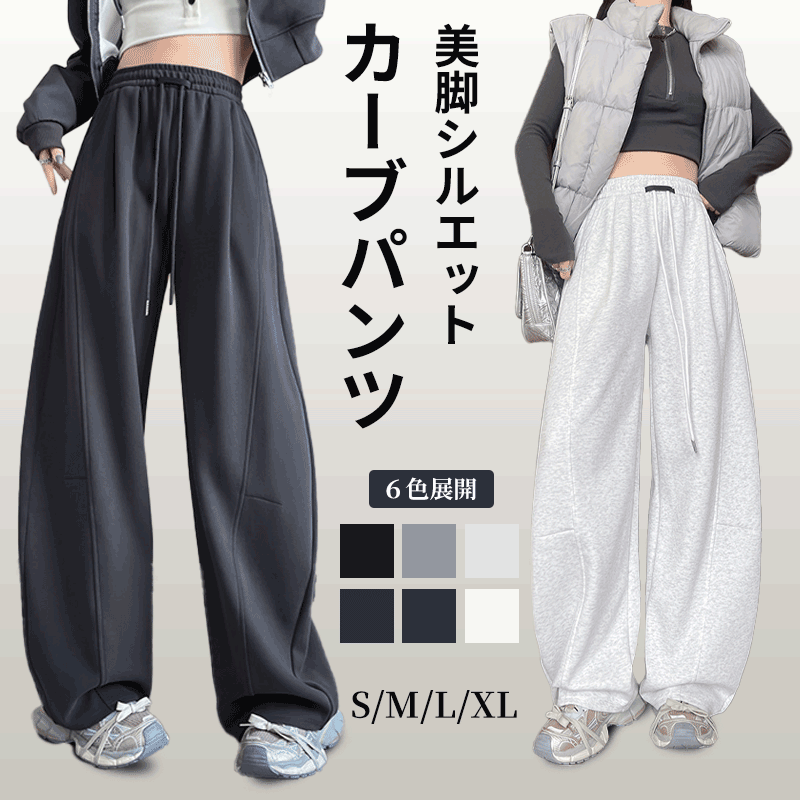 カーブパンツ ワイドパンツ スウェット パネルライン レディース 体型カバー 美脚 脚長 軽量快適 ゆったり 柔らかい ウエストゴム 細見え 着痩せ カジュアル おしゃれ 春 夏 秋