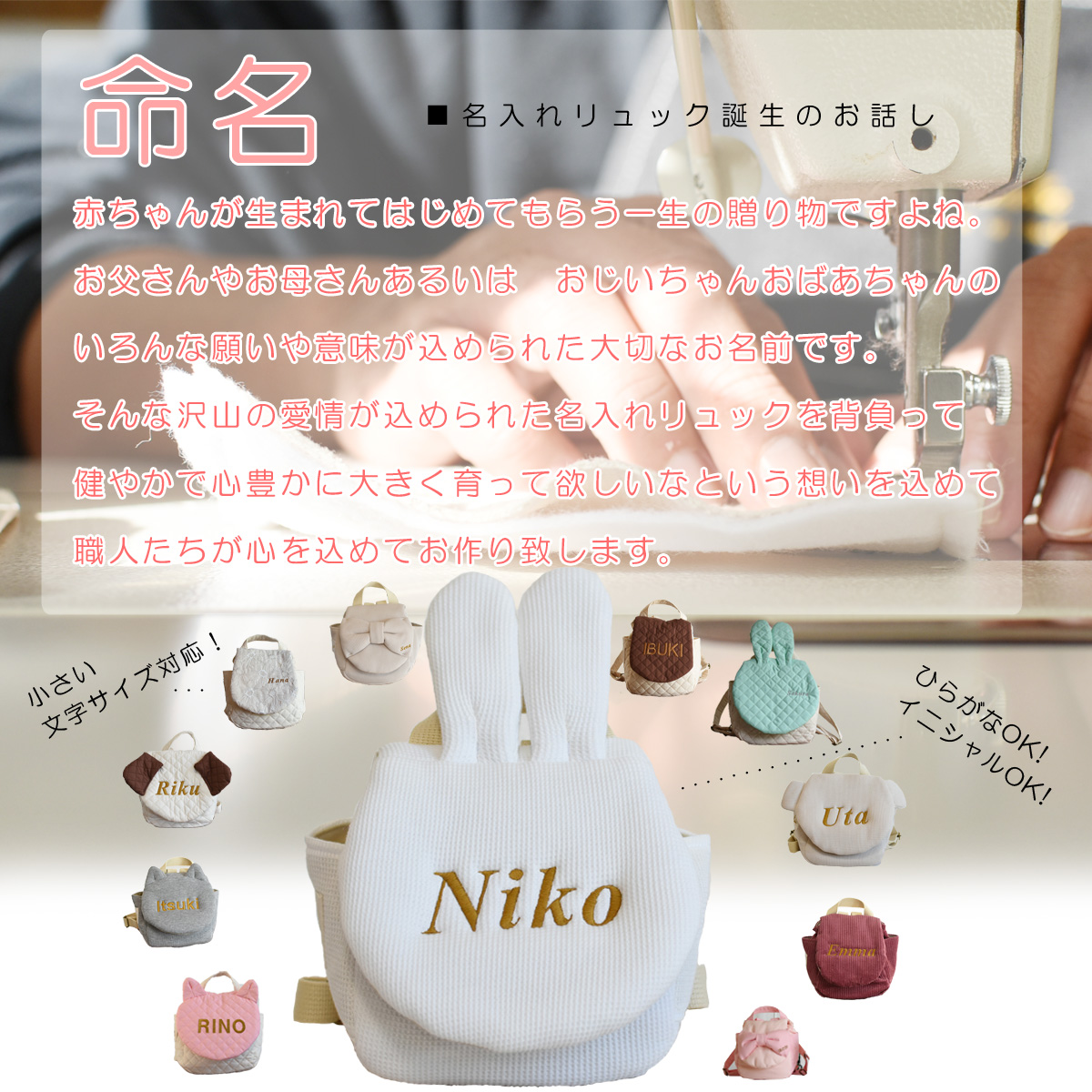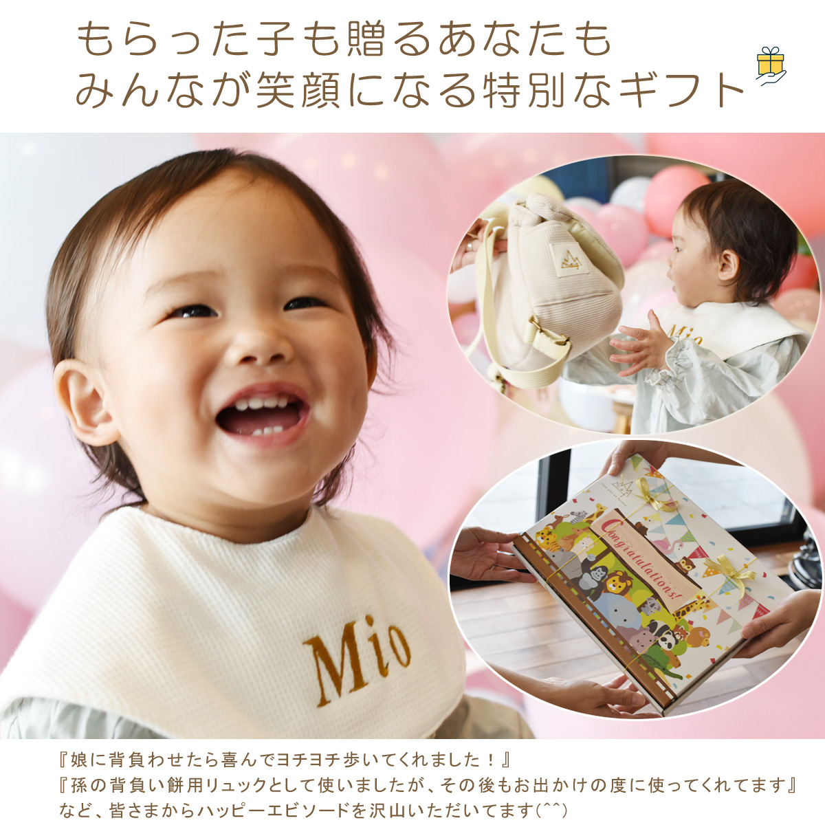 名入れベビーリュック(名前入りベビーリュックサック)、ハーネスベビーリュック、キッズショルダーバック(キッズショルダーバッグ)、個包装もち、一升餅、選び取りカード、ガーランド、、名入れスタイ、命名書(名入れ命名書)、名入れキーホルダー、リュックサック、ナップサック、巾着袋、コップ入れ