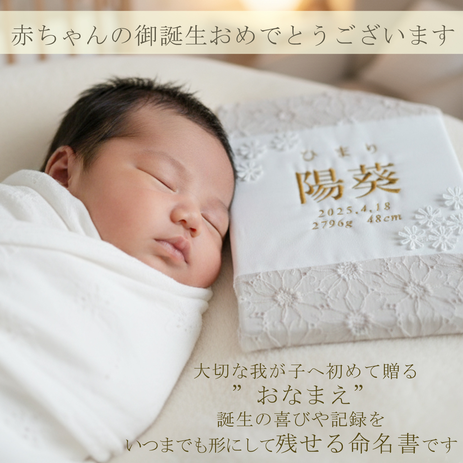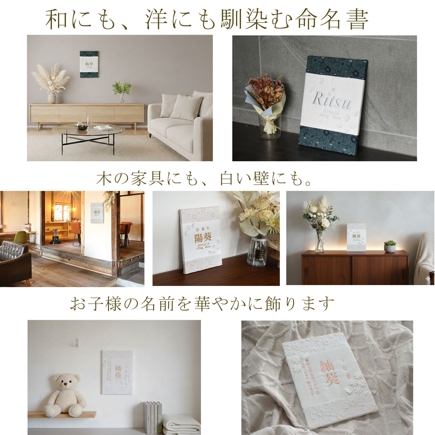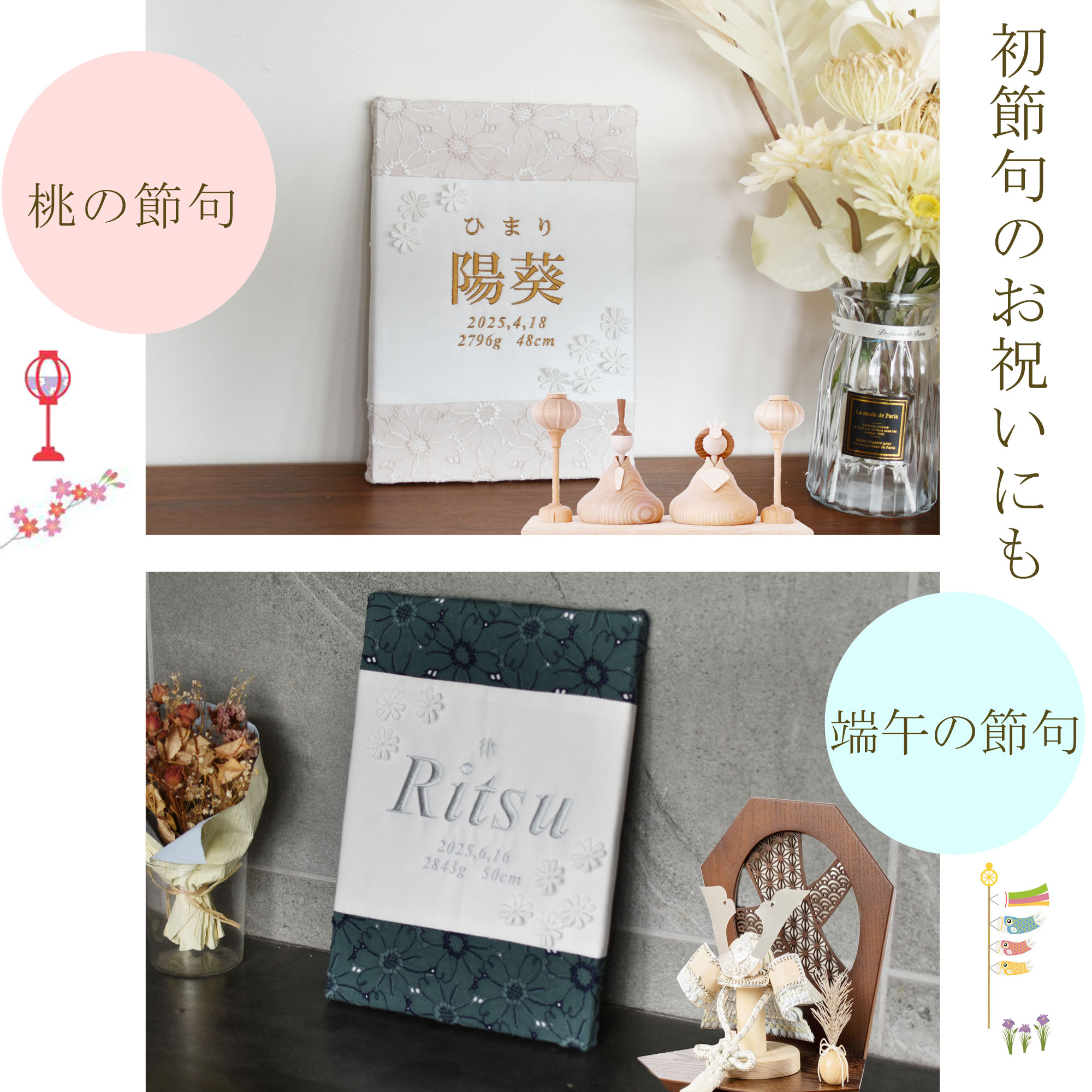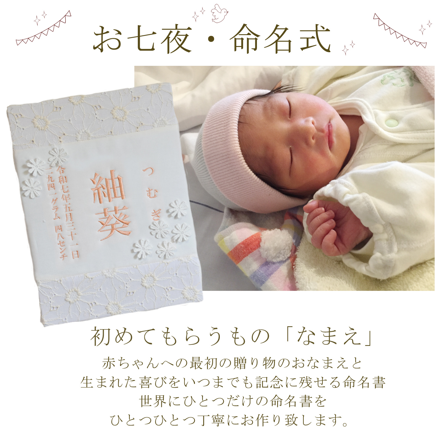 命名書 刺繍 刺しゅう オーダー 名入れ 名前旗 赤ちゃん ベビー お七夜 節句 七五三 ひな祭り 出産祝い アートのような命名書 インテリア おしゃれ caf-0101