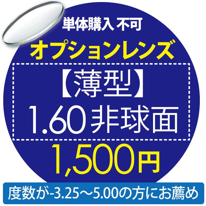 メガネ福袋のオプションレンズ 単体購入不可 薄型 1.60非球面 1500円用
