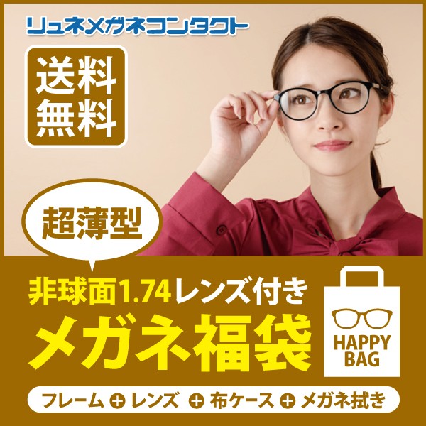 商品名:超薄型 非球面1.74レンズ付き メガネ福袋 家用メガネ 近視・乱視対応 フレーム+レンズ+メガネ拭き+布ケース付