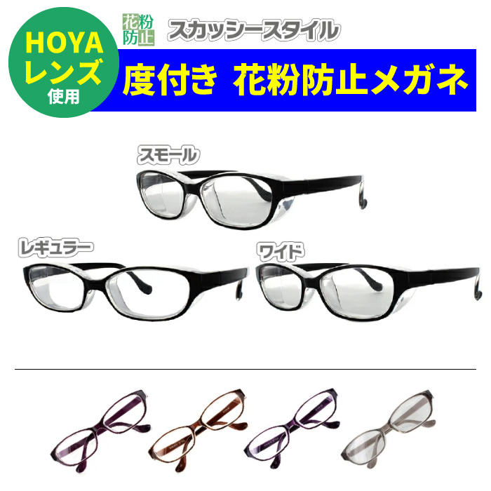 度付き対応 HOYAレンズ使用 1.6非球面付き スカッシー スタイル スモール レギュラー ワイド 花粉防止 花粉対策 UVカット 花粉メガネ スカッシー スマート2