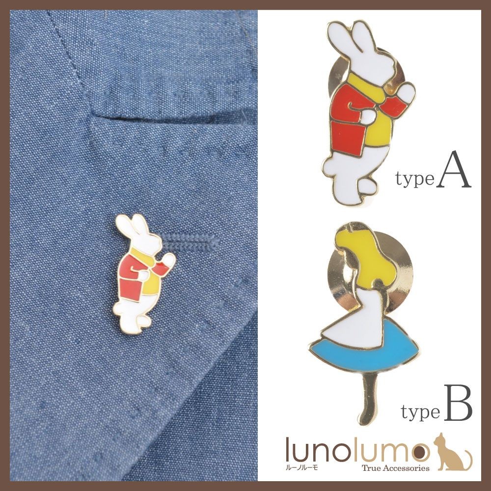 メール便送料無料 ラペルピン ピンバッチ ネコ ピンブローチ タックピン ウサギ うさぎ 兎 兔 アリス 少女 女の子 メルヘン B