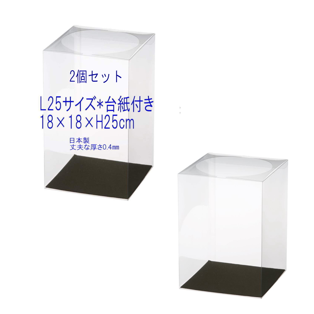 クリアケース L25サイズ 台紙付き 2個 18cm×18cm×高さ25cm 花 クリアボックス フラワーボックス プリザーブドフラワー ラッピング 日本製 c0010d-2