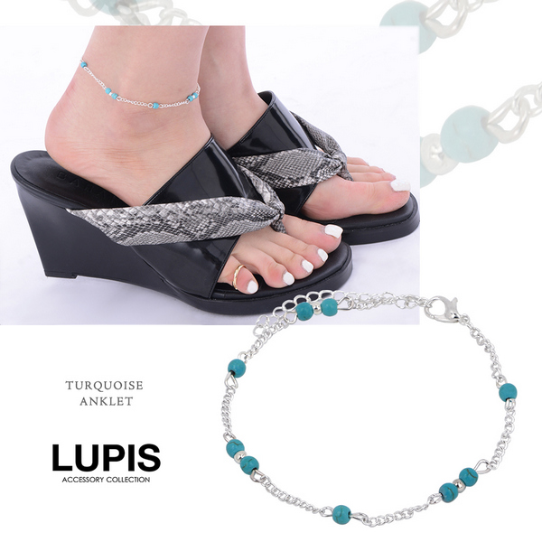 アンクレット レディース ターコイズ ビーズ ステーションチェーン シルバー ポイント消化 ルピス lupis