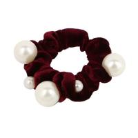 ベロア生地に大小大きさの違うパールをあしらったシュシュ。