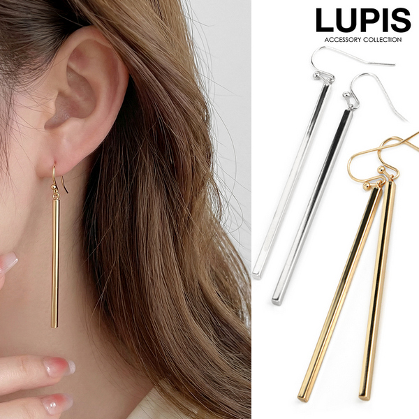 ピアス フックピアス ロングバー スクエア メタル 大ぶり 大振り 大きめ 揺れる ぶらさがり ゴールド シルバー ルピス lupis