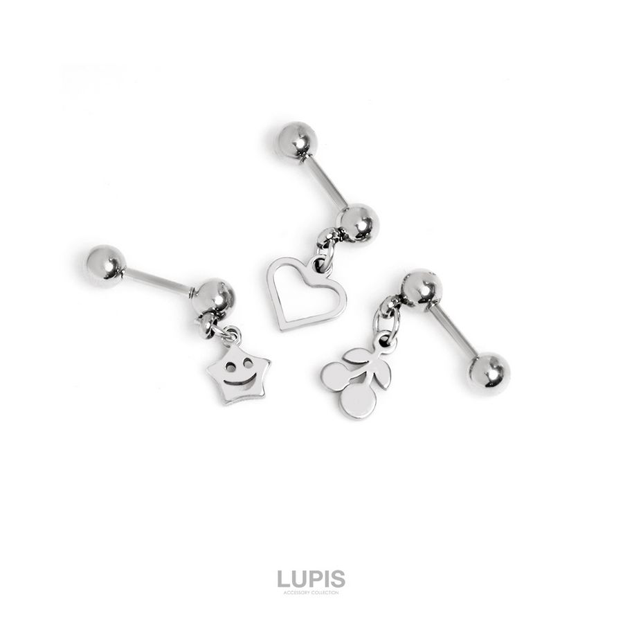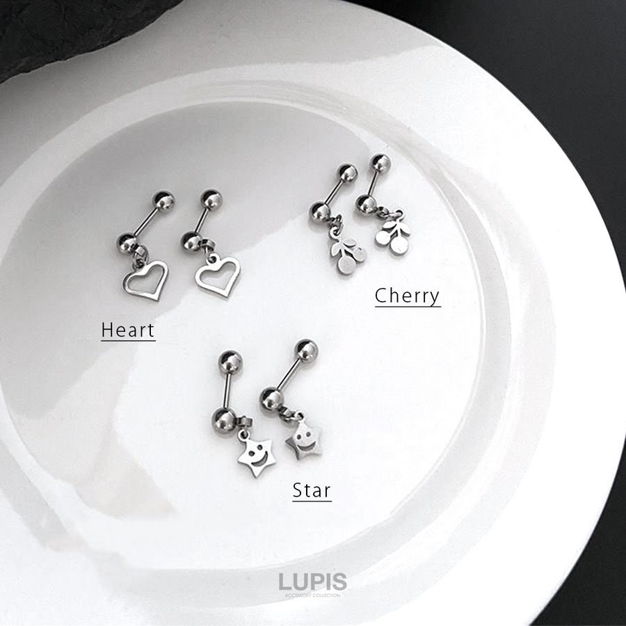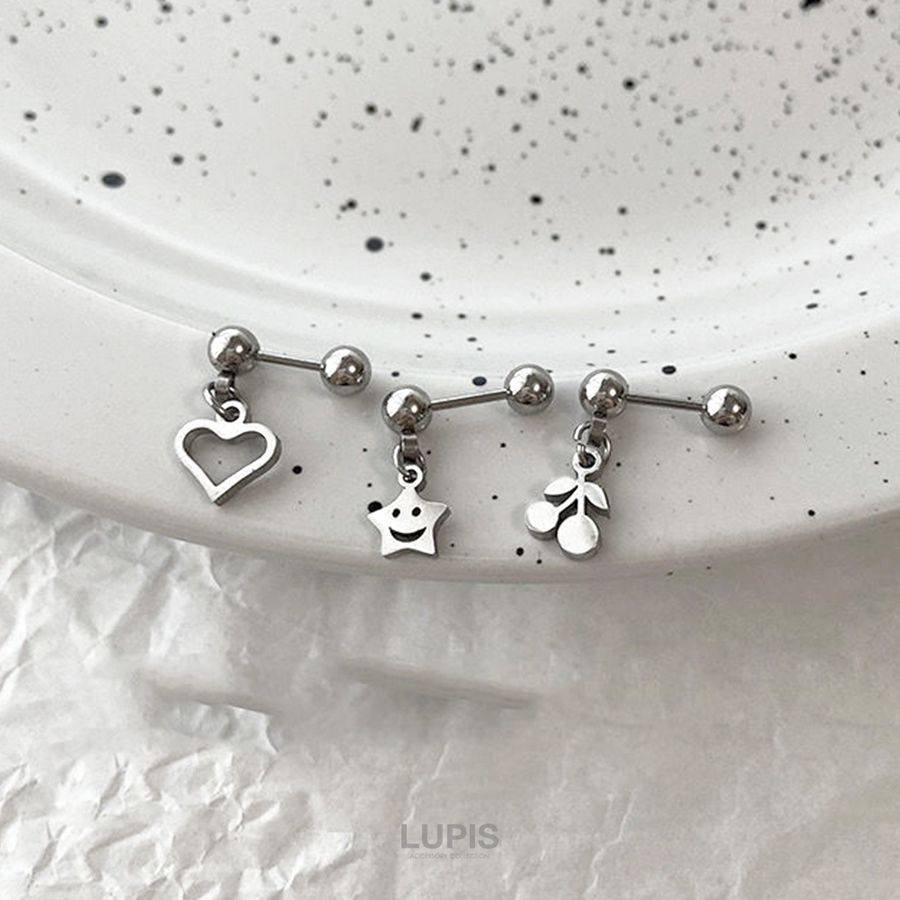 ボディピアス 18G ストレートバーベル チャーム ハート スター チェリー 揺れる サージカルステンレス 軟骨ピアス つけっぱなしOK ルピス lupis