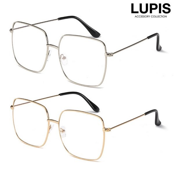 伊達メガネ ダテメガネ メガネ レディース スクエア 細フレーム メタルフレーム 大きめ UVカット ルピス lupis