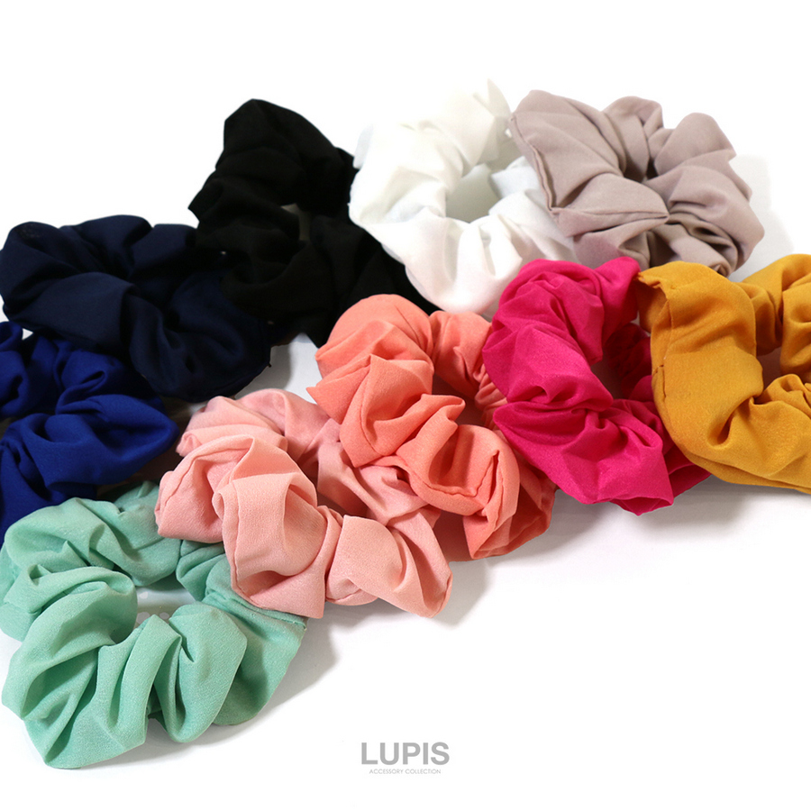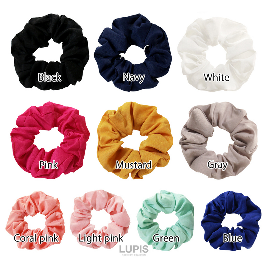 シュシュ シフォンシュシュ ヘアアクセサリー カラフル カラー シンプル 定番 ホワイト ブラック グレー ピンク コーラルピンク ライトピンク 40代 ルピス lupis