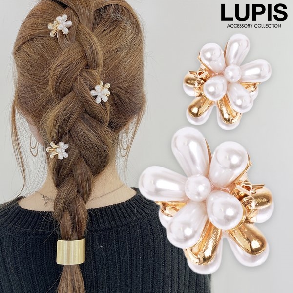 ヘアクリップ プチクリップ 前髪クリップ ヘアアクセサリー パールフラワー 簡単装着 おしゃれ お呼ばれ オケージョン ルピス lupis