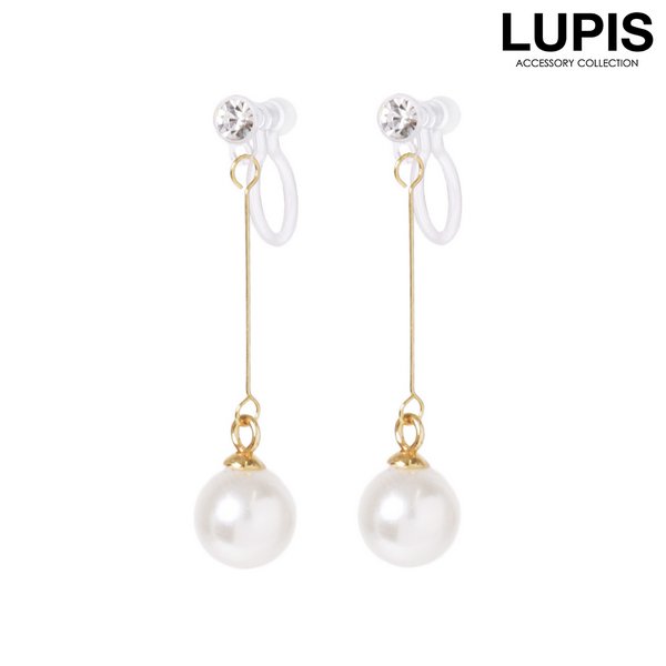 イヤリング ノンホールピアス 樹脂 金属アレルギー対応 パール シンプル 揺れる ロング お呼ばれ オケージョン ルピス lupis