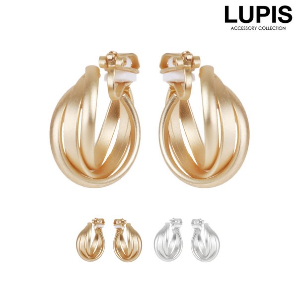 イヤリング フープ マットメタル 3連 ゴールド シルバー ツイスト ひねり 大人 おしゃれ クリップ式 ルピス lupis
