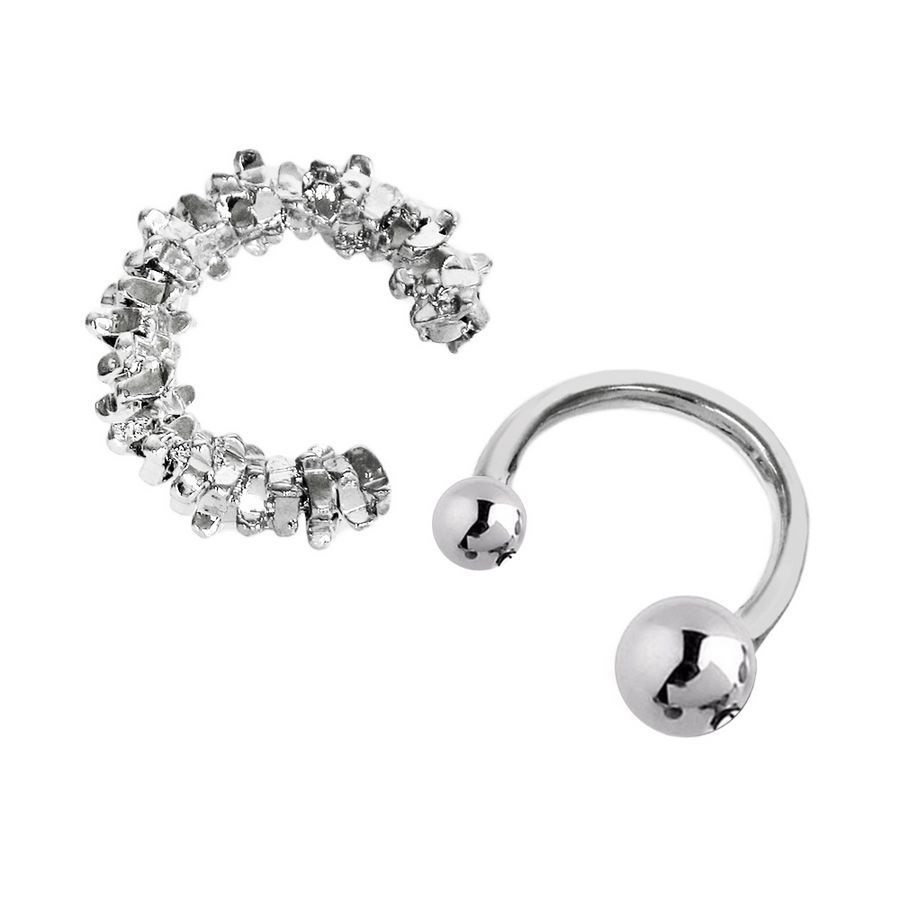 凹凸のあるゴージャスな雰囲気のイヤーカフと、ツインボールのイヤーカフセット。