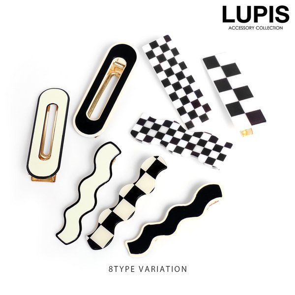 ヘアクリップ ヘアアクセサリー モノトーン ウェーブ チェッカーフラッグ 韓国っぽ 簡単装着 簡単アレンジ かわいい ルピス lupis