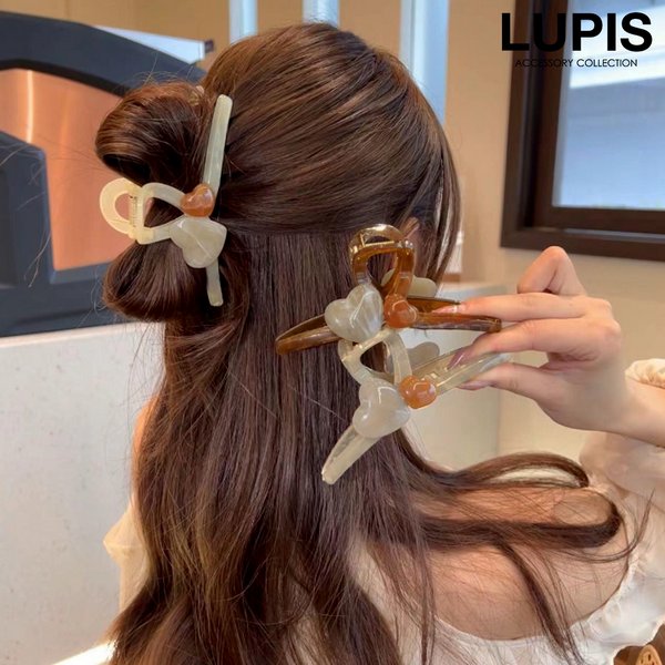 バンスクリップ ヘアクリップ ヘアアクセサリー ハート マーブル かわいい ガーリー アクリル 大人ガーリー まとめ髪 簡単 時短 韓国 40代 ルピス lupis