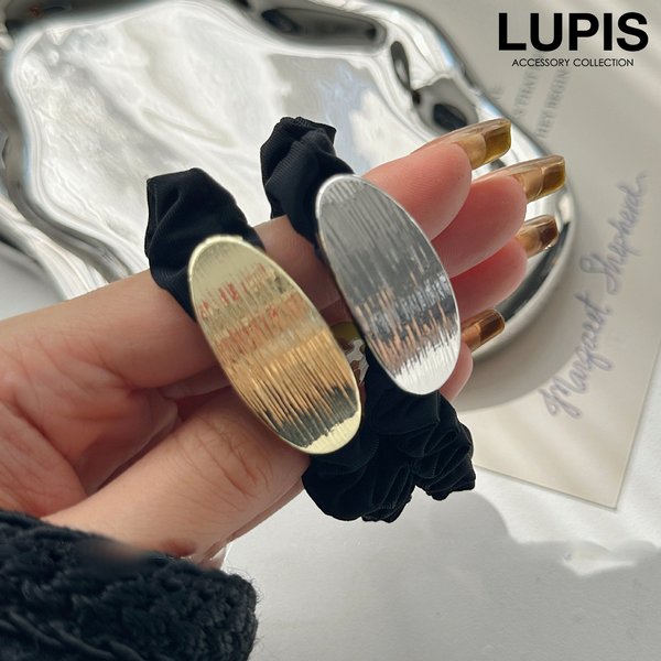 ヘアアクセサリー ヘアゴム メタル プレート オーバル シンプル くしゅくしゅ カジュアル 上品 華やか こなれ感 まとめ髪 ポニー 韓国 40代 ルピス lupis