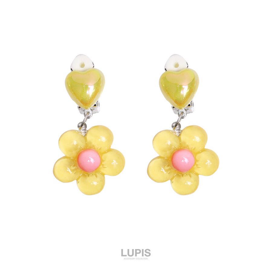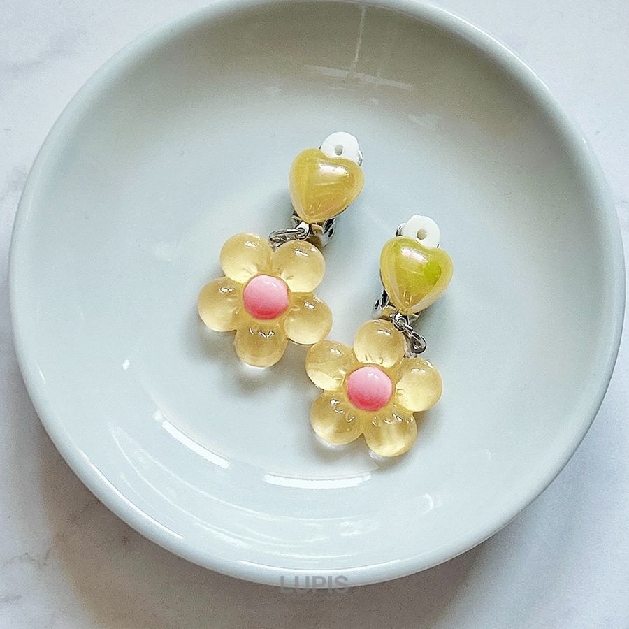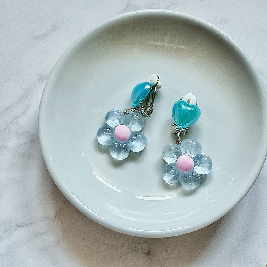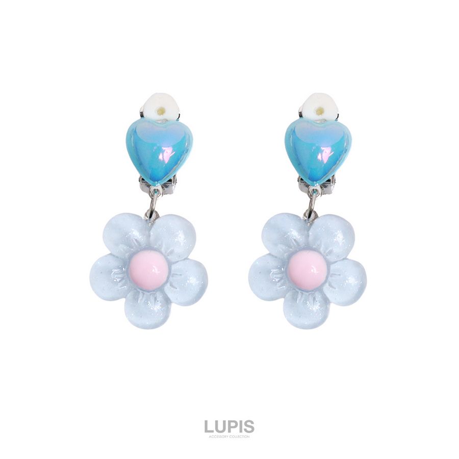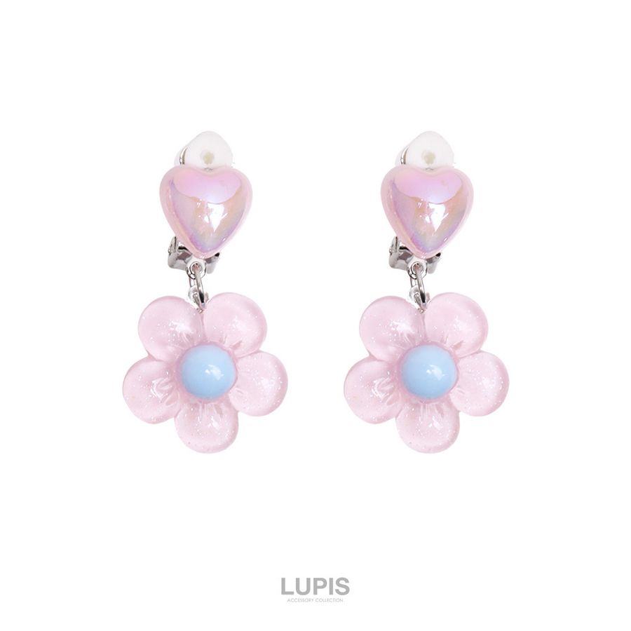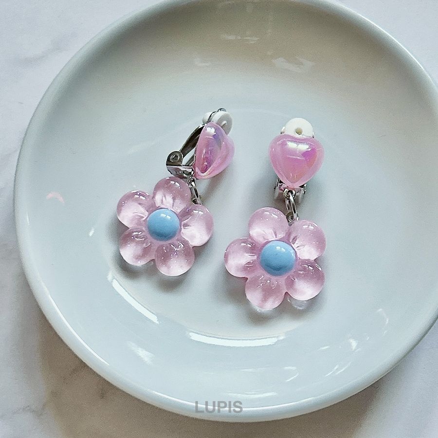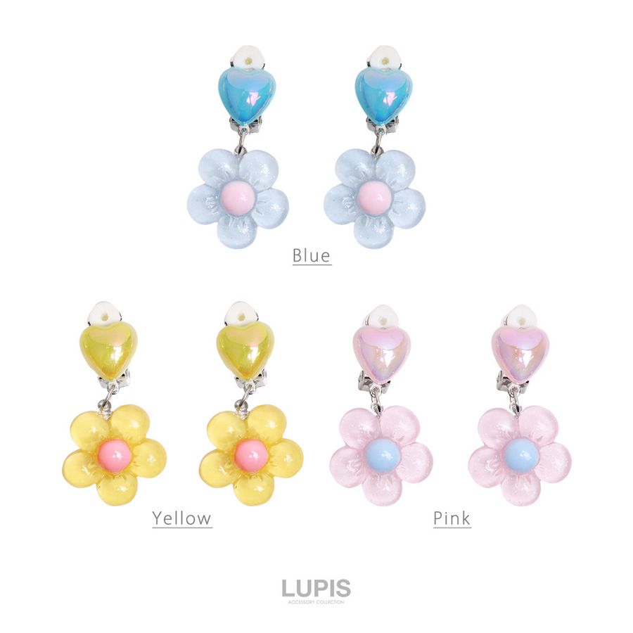 イヤリング レディース ハート フラワー かわいい ガーリー 春夏 リゾード 透明感 爽やか 差し色 クリップ 韓国 韓国っぽ ルピス lupis