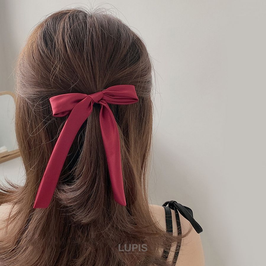 滑らかでツヤ感のあるサテン風生地のリボンヘアゴム。