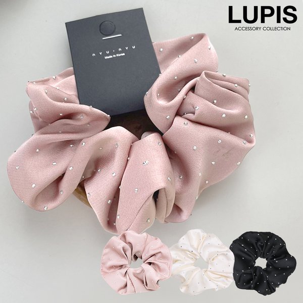 ヘアアクセサリー ヘアゴム シュシュ おしゃれ サテン キラキラ ドット柄 40代 シンプル 華やか 上品 ポニー お団子 ヘアアレンジ 韓国 韓国っぽ lupis ルピス
