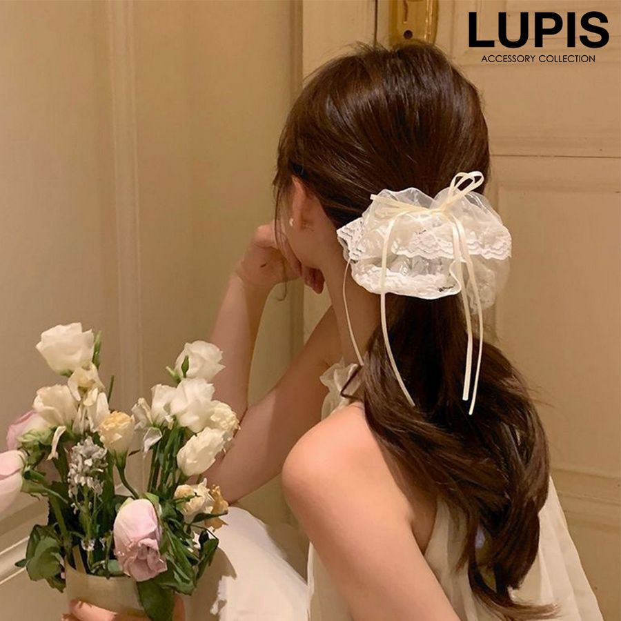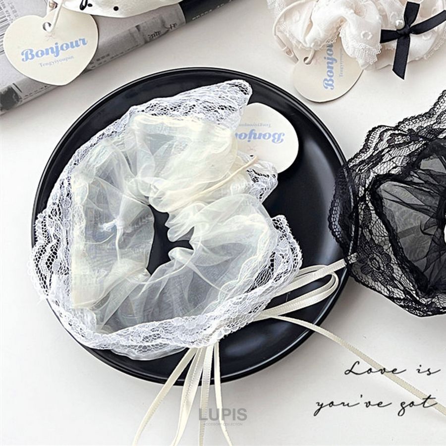 ヘアアクセサリー シュシュ ヘアゴム オーガンジー レース リボン バレエコア ガーリー フェミニン 華やか オケージョン まとめ髪 韓国 韓国っぽ lupis ルピス