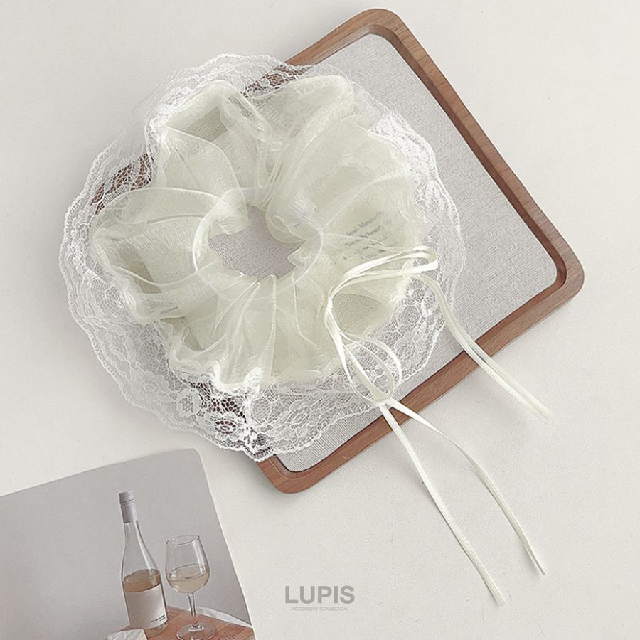 オーガンジー×レースの生地でフェミニンな印象のシュシュ。