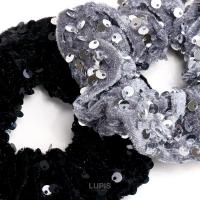 スパンコールがキラキラと贅沢に煌めく華やかなシュシュ。