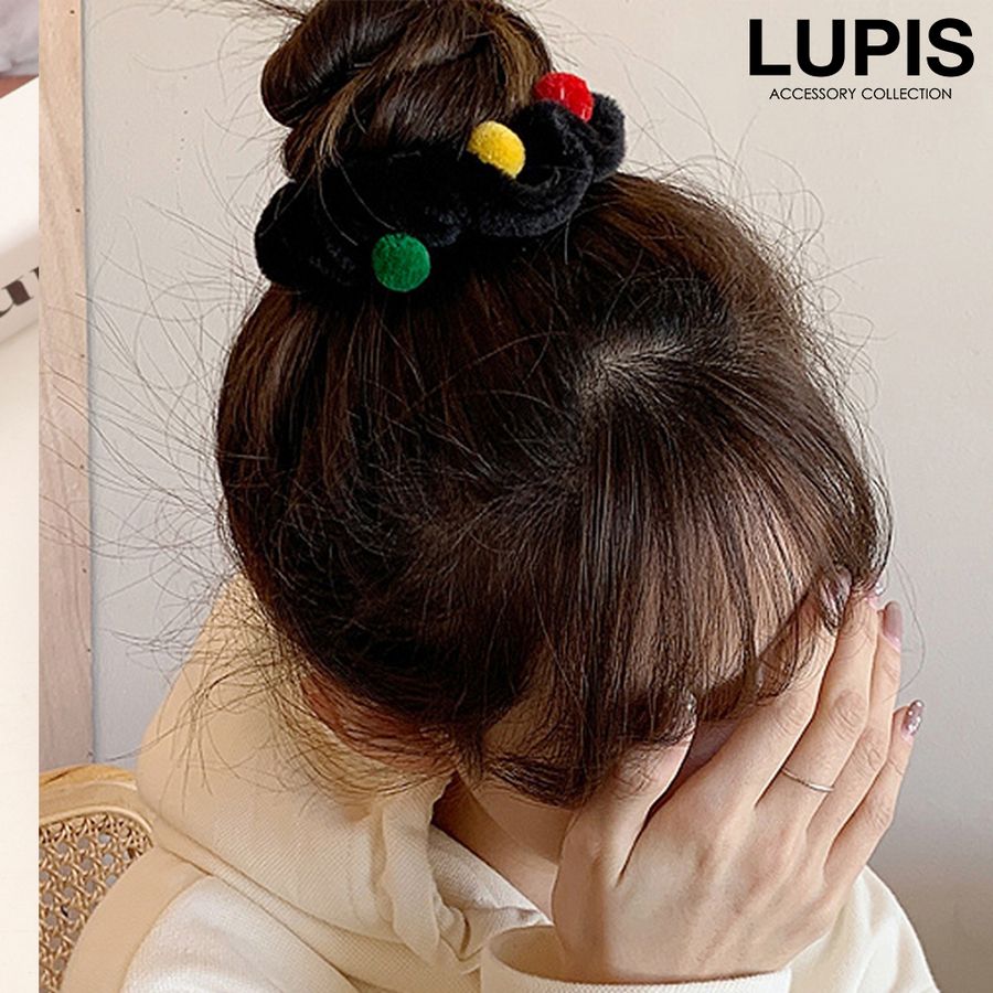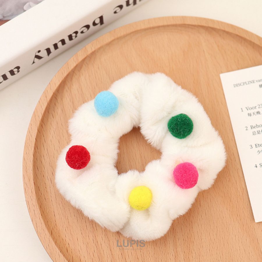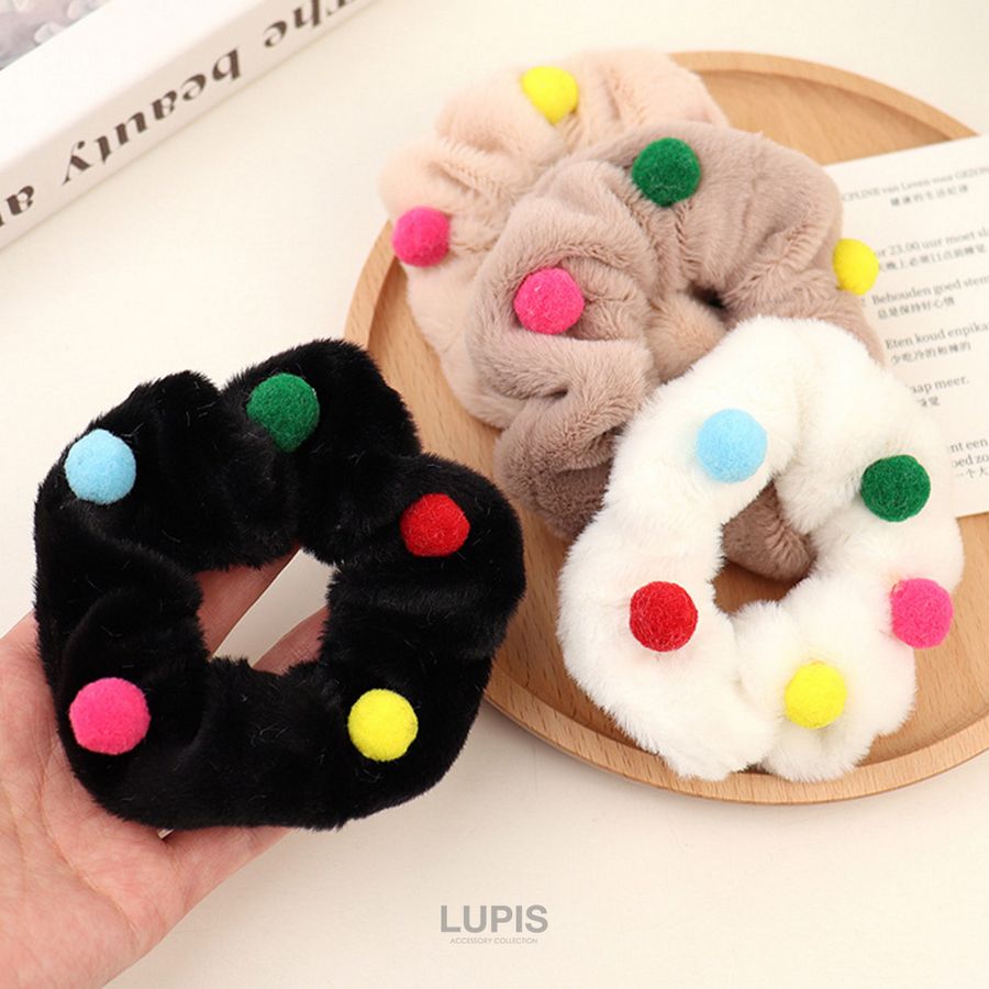 ヘアアクセサリー ヘアゴム シュシュ ファー ポンポン ポップ かわいい ファンシー カラフル 華やか 秋冬 ヘアアレンジ まとめ髪 韓国 韓国っぽ lupis ルピス