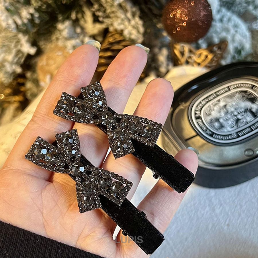 ヘアアクセサリー ヘアクリップ リボン パヴェ キラキラ 華やか ベロア 大人っぽ ガーリー かわいい シック オケージョン 韓国 韓国っぽ lupis ルピス