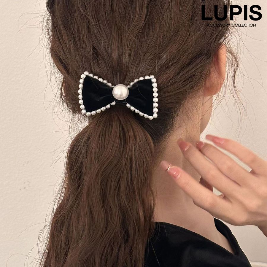 ヘアアクセサリー ヘアゴム リボン パール 上品 ガーリー 華やか かわいい フレンチガーリー オケージョン まとめ髪 ポニー 韓国 韓国っぽ lupis ルピス