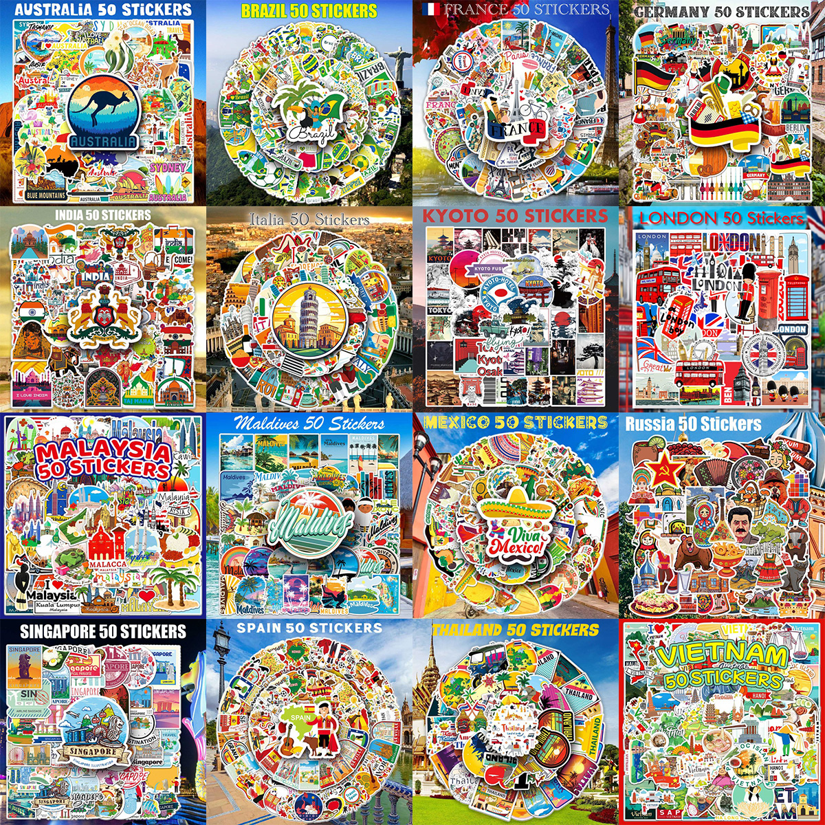 ステッカー シール 防水 大量 グラフィック スケートボード スーツケース 旅行 トラベル 世界一周 海外旅行 外国 オーストラリア ブラジル フランス ドイツ インド イタリア 京都 日本 ロンドン イギリス マレーシア モルディブ メキシコ ロシア シンガポール スペイン タイ ベトナム