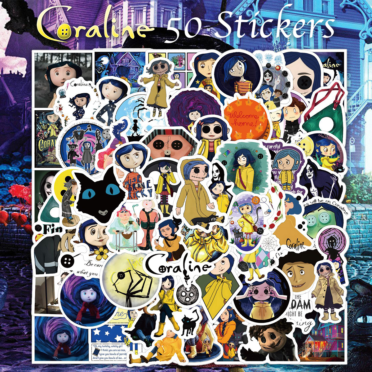 コララインとボタンの魔女 ステッカー 60枚セット PVC 防水 シール Coraline ストップモーション アニメ 映画 キャラクター