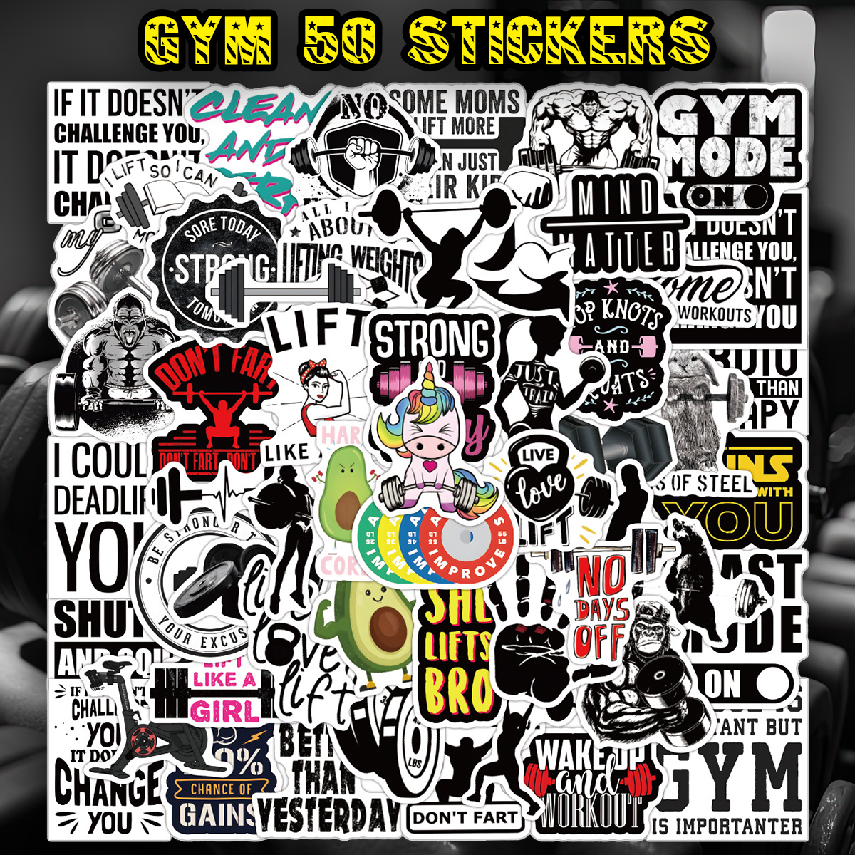 スポーツジム ( GYM )をテーマにしたステッカー50枚セット。