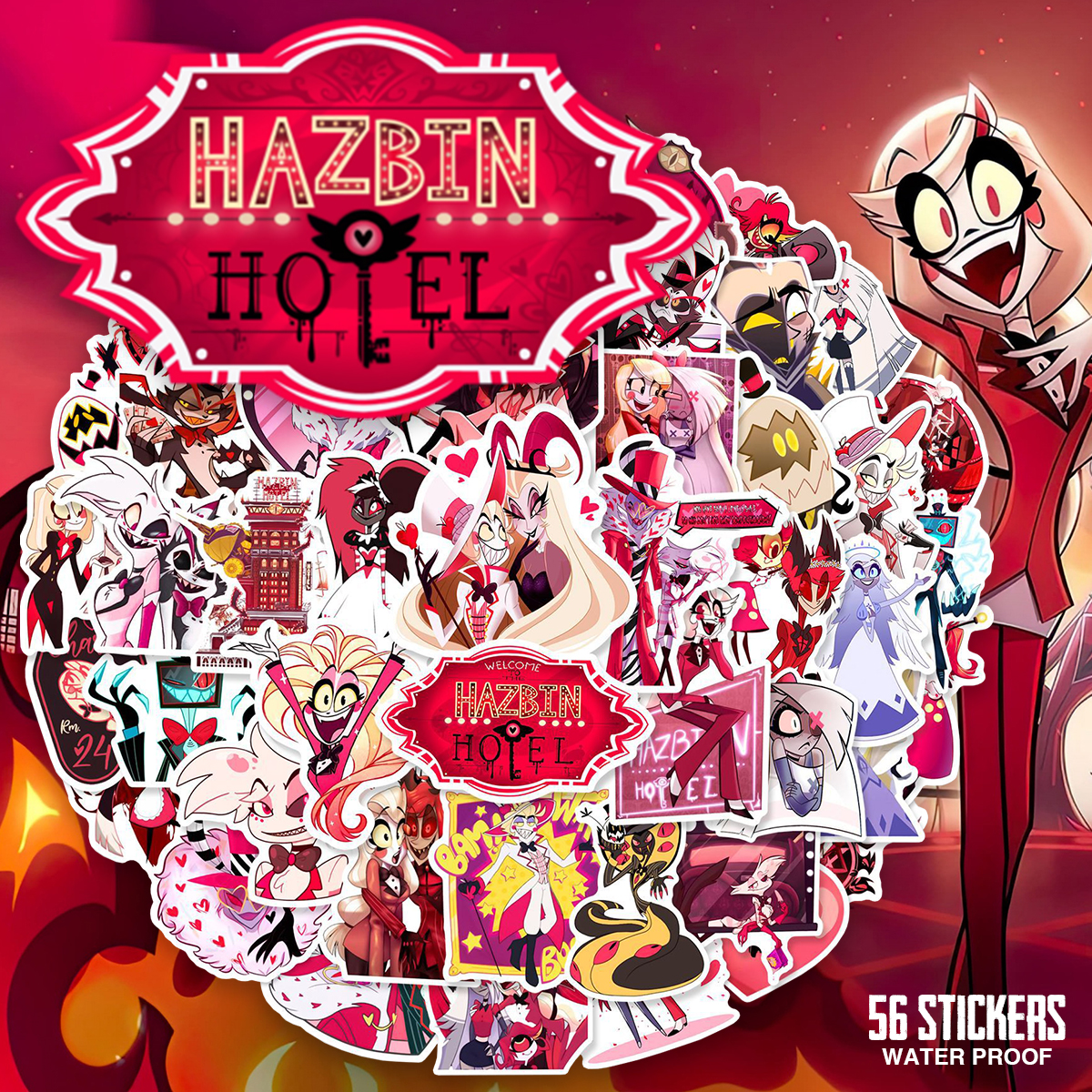 ハズビンホテルへようこそ ステッカー 56枚セット PVC 防水 シール 大量 Hazbin Hotel ヘルヴァボス アニメ キャラクター 海外 ブラック コメディ ホラー