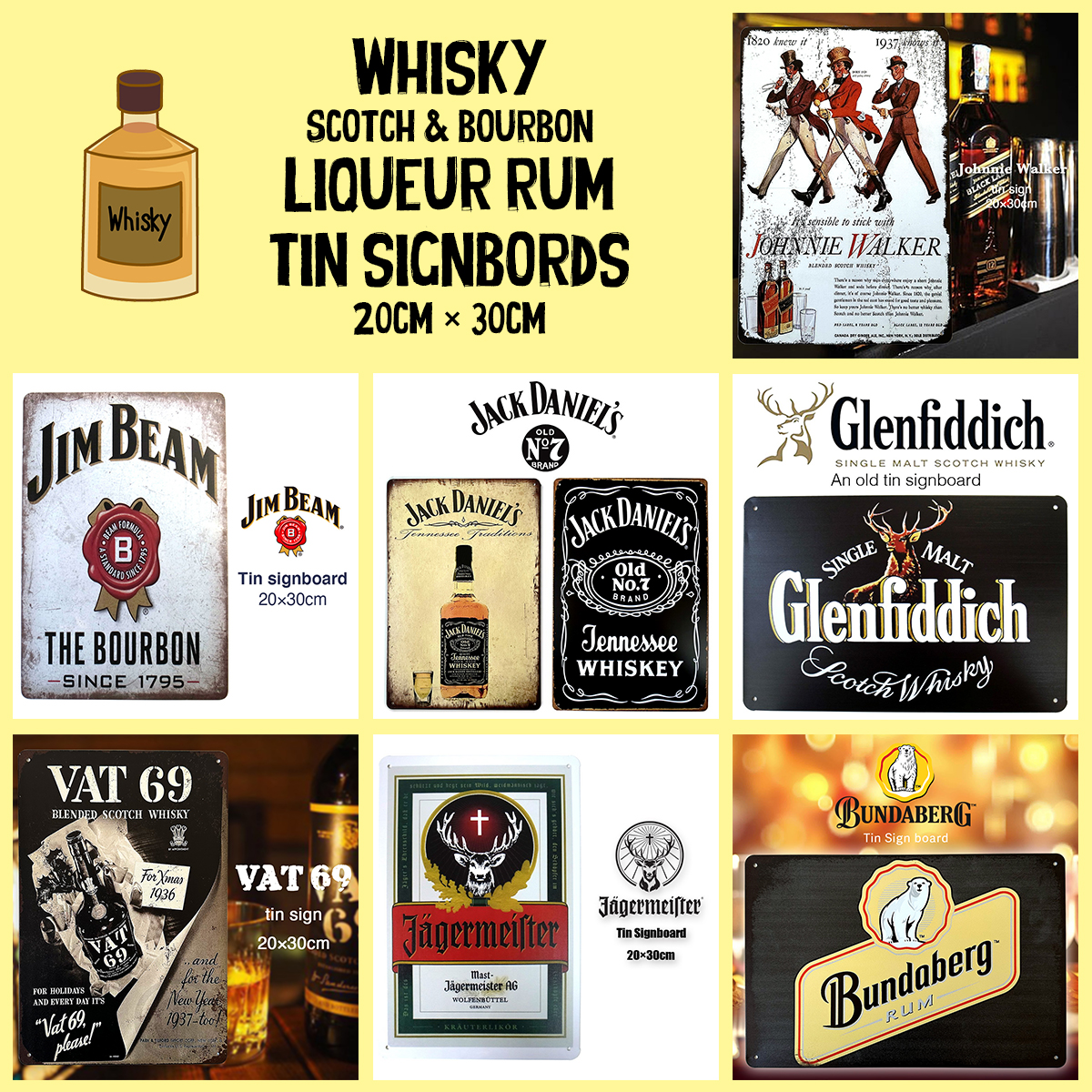 ウィスキー リキュール ラム ブリキ看板 20cm×30cm ジャックダニエル ジョニーウォーカー ジムビーム グレンフィディック VAT69 バカルディ