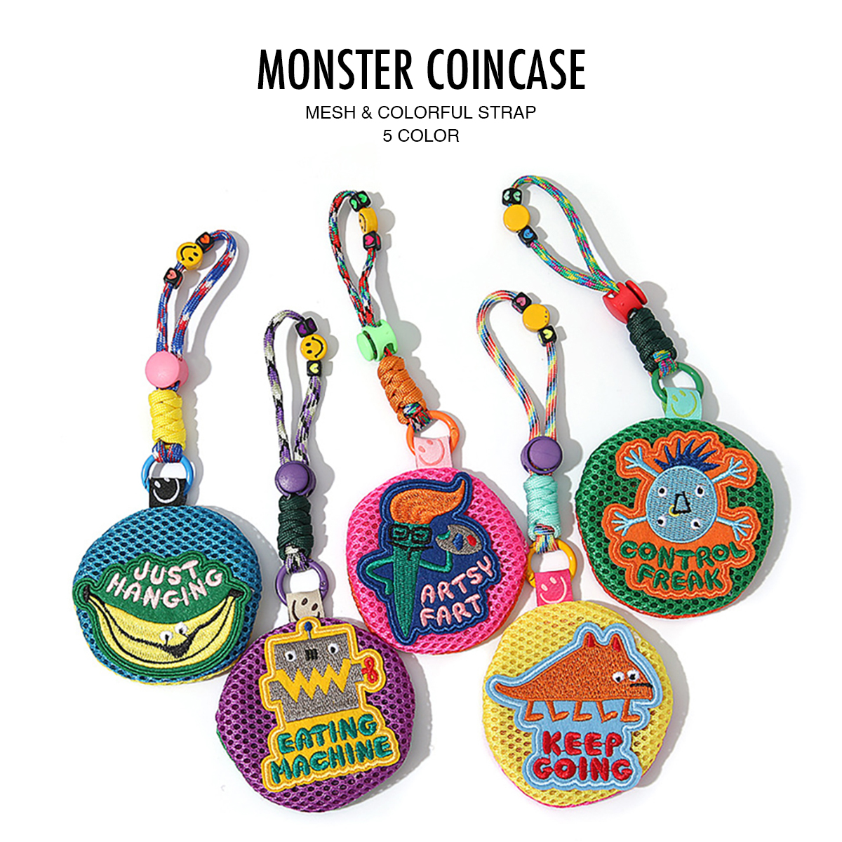 モンスター メッシュ コインケース 全5色 AirPodsケース ストラップ付き 刺繍 カラフル 雑貨 かわいい おしゃれ 動物