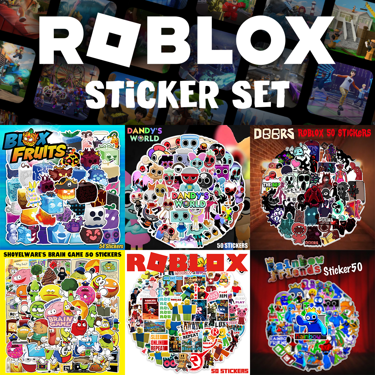 ROBLOX ステッカー 50枚セット PVC 防水 シール 全7タイトル ロブロックス レインボーフレンズ ダンディーズワールド ホラー ゲーム キャラクター
