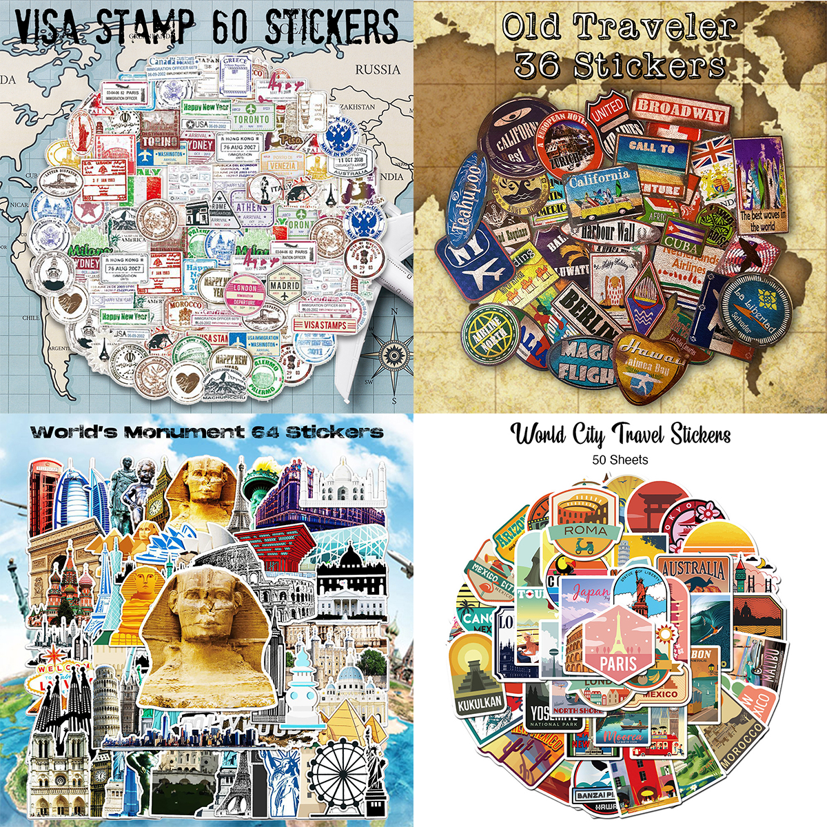 ステッカー シール 防水 大量 スーツケース パスポート 旅行 トラベル 海外旅行 世界一周 記念碑 建築物 建造物 モニュメント 自由の女神 スフィンクス 凱旋門 エッフェル塔 ピサの斜塔 サグラダファミリア ピラミッド タージマハル シドニー オペラハウス 聖ワシリイ大聖堂 リンカン大聖堂 コロッセオ ラスベガス ハリウッド NY ニューヨーク ロンドン ハワイ イタリア オーストラリア メキシコ エジプト ローマ パリ 東京 ヴィンテージ キューバ カリフォルニア パスポート 旅行