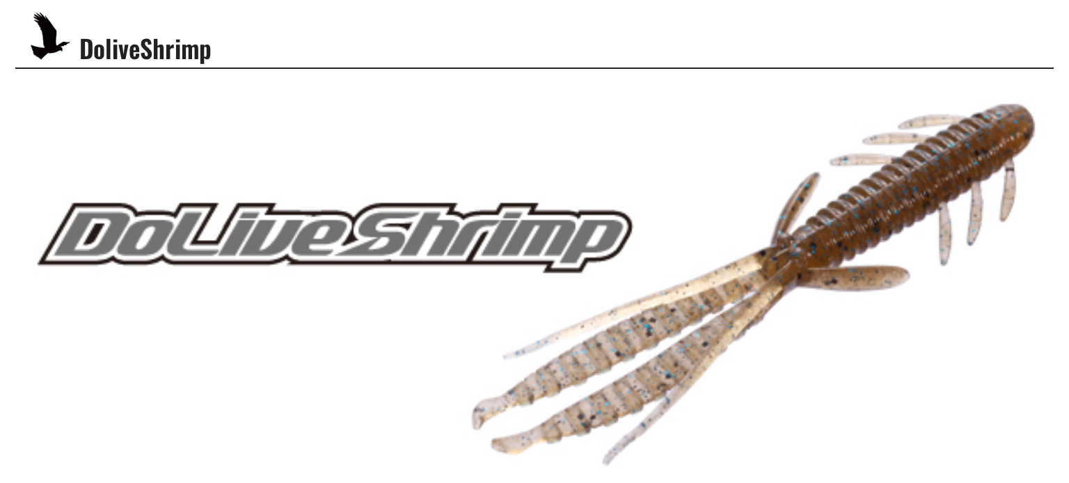 「エビ」・・・フィールドを問わず生息し、バスにとって容易に捕えやすく、そして美味なのだろう、明らかに好んで捕食するバスの大好物といえる。ドライブシュリンプは、エビが細い手足を忙しく動かしながら移動する様、さらにその際に発生する微細な振動までもリアルに表現する。フォールやスイミング時に発する逆手の超高速振動が、脚、ヒゲ、独自形状のフラットテールに伝達されることでボディ全体を小刻みに震わせる様子は、水中を漂いながら水を掻くエビそのもの。また、逆手にはフォールスピードにブレーキをかける効果もあり、ボディを細かく震わせながらのスローフォールがフォール中のバイトを激増させる。着底後は、低比重マテリアルによって、ステイを交えたスローな誘いにおいてもナチュラルな水平姿勢をキープ。あらゆる誘いにおいてもパーツ同士が干渉することなく、弱々しくも生命感溢れる動きでバイトを誘発する。本物のエビ以上にエビと化し、スレバスが呆気なく口を開く、反則的感覚を味わっていただきたい。