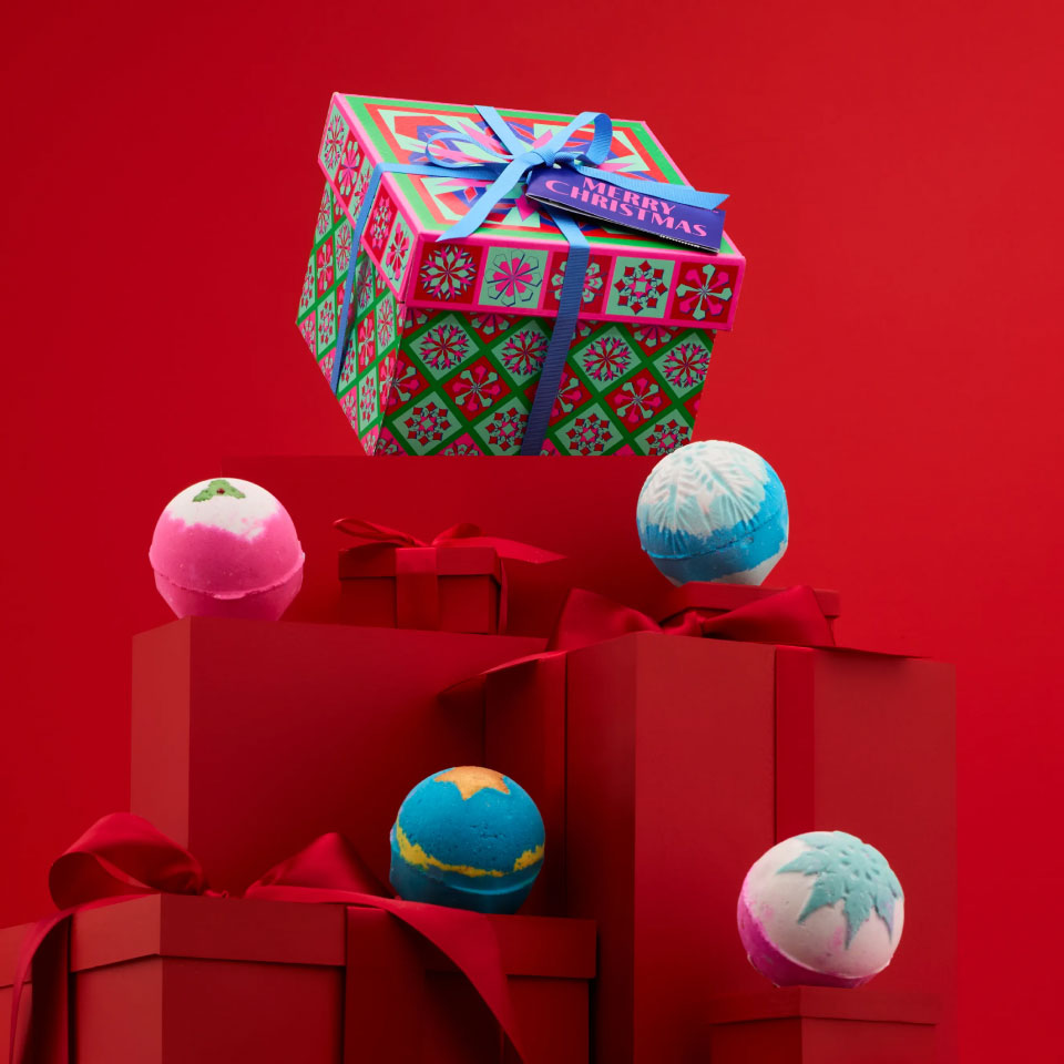 楽しいバスボム(入浴料)を4種類セレクトした、お風呂が大好きな人の夢を叶えるギフトが今年も登場!