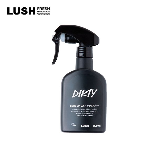 軽い感触の『Dirty ボディスプレー』。ハーバルなエッセンシャルオイルの香りが全身に漂い、日中いつでもどこでもシュッとスプレーできます。