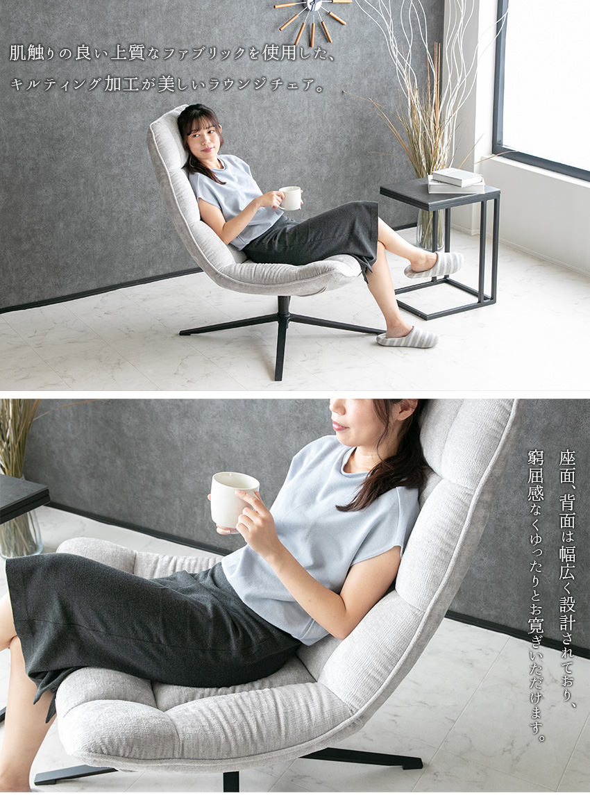 肌触りの良いファブリックを使用した、ゆったり寛げるラウンジチェア。