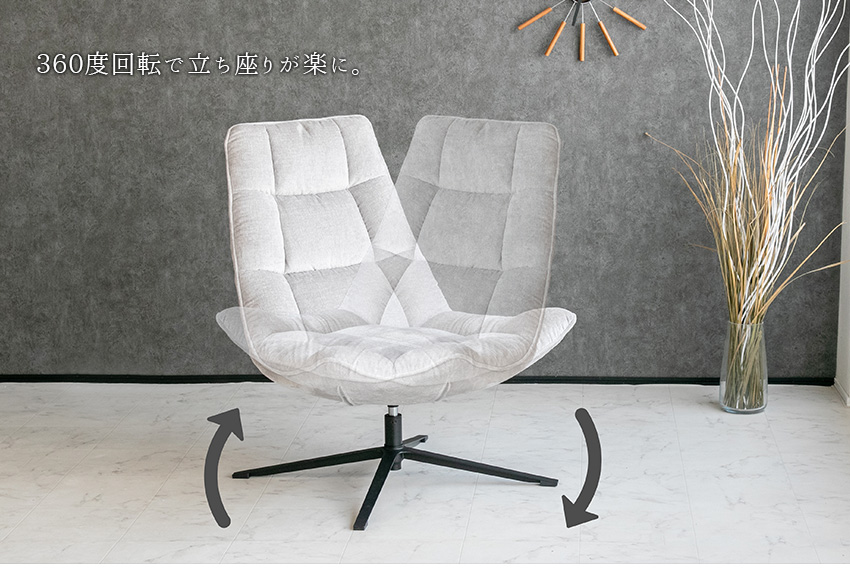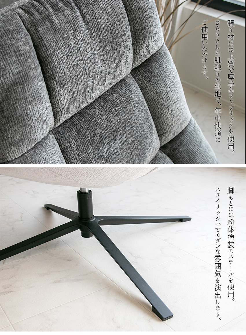 ラウンジチェア ファブリック パーソナルチェア リラックスチェア レザー 1人掛け モダン おしゃれ ライトグレー ダークグレー チェアー 回転 高級感